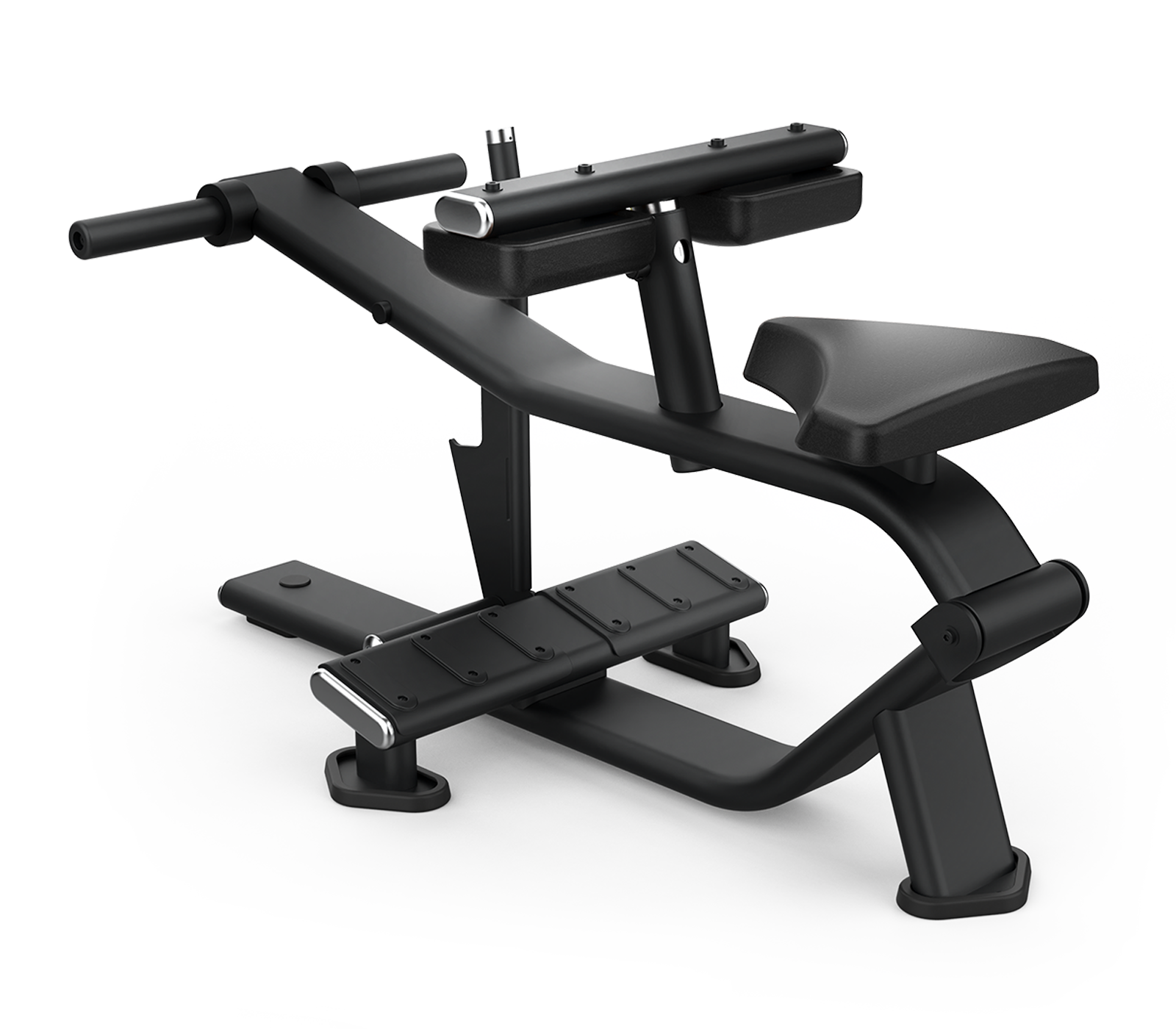 The Intenza Plate—Loaded Seated Calf Raise is built for effective lower-leg training, targeting the calf muscles through a smooth, controlled seated motion. Adjustable thigh support provides a secure fit for different users, and the durable frame is designed to handle heavy, repeated use in commercial gyms.
